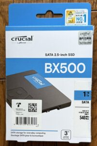 交換前のHDDの容量が1TBなのでSSDも1TBを購入することにし、以下の「内蔵SSD Curcial 1TB 2.5インチ SATA CT1000BX500SSD1JP」(10,160円)を購入しました。