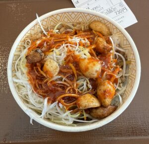 「すき家」のホームページでは唐辛子とコチュジャンが効いたピリ辛のたれと紹介されていますが、辛みはそれほどありません。w
